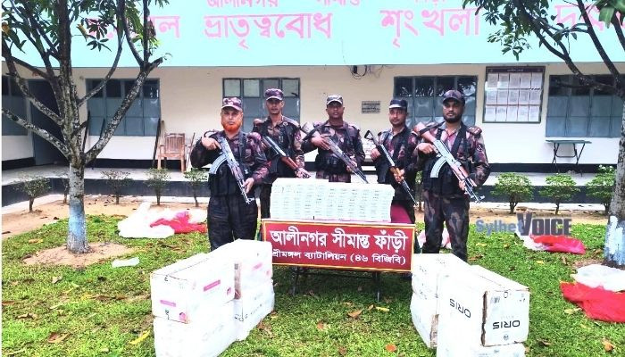কুলাউড়া সীমান্তে বিপুল পরিমাণ ভারতীয় অবৈধ সিগারেট জব্দ