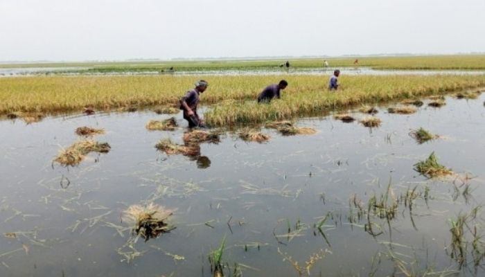 অর্ধেক ধান এখনও ক্ষেতে, টানা বৃষ্টিতে দিশেহারা হাওরের কৃষক