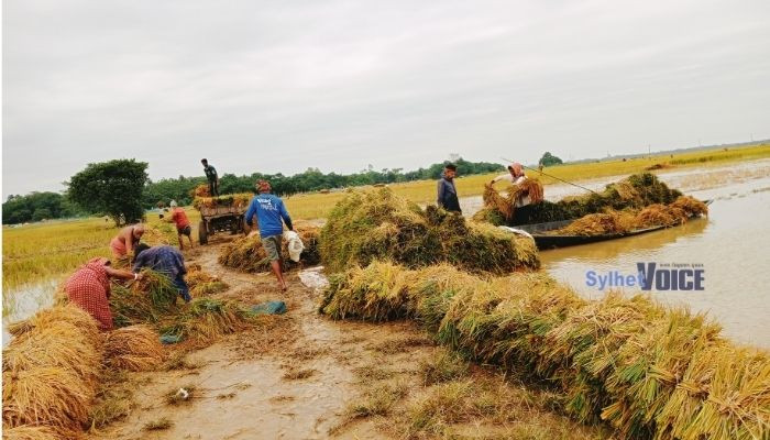 কৃষকরা বলছেন, অতিবৃষ্টির কারণে জলাবদ্ধতা দেখা দেওয়ায় হাওরের নিচু জমিতে হারবেস্টার নামানো যাচ্ছে না। ফলে এসব জমির ধান কাটায় নির্ভর করতে হচ্ছে কৃষি শ্রমিকের উপর। তবে শ্রমিক সংকট থাকায় দৈনিক এক হাজার টাকা মজুরীতেও মিলছেনা ধান কাটার শ্রমিক। এছাড়া বাড়তি খরচে ধান কেটে কোনোরকমে খলায় আনলেও কয়েকদিন ধরে টানা বৃষ্টিপাতের কারণে ধান শুকানো যাচ্ছে না। এতে ধানে দুর্গন্ধের পাশাপাশি চারা গজাচ্ছে।