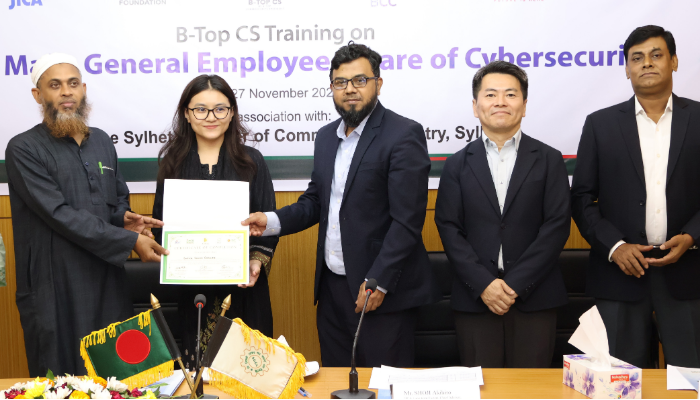 সিলেট চেম্বারে সাইবার সিকিউরিটি কর্মশালার সনদপত্র বিতরণ